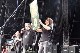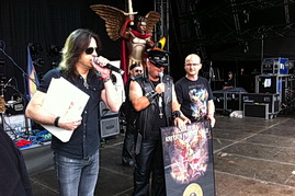 Zlatou desku Láďovi Křížkovi a KREYSON za nosič Návrat Krále předal Michael Sweet, zakladatel, leader a zpěvák legendární White Metalové kapely STRYPER z USA.